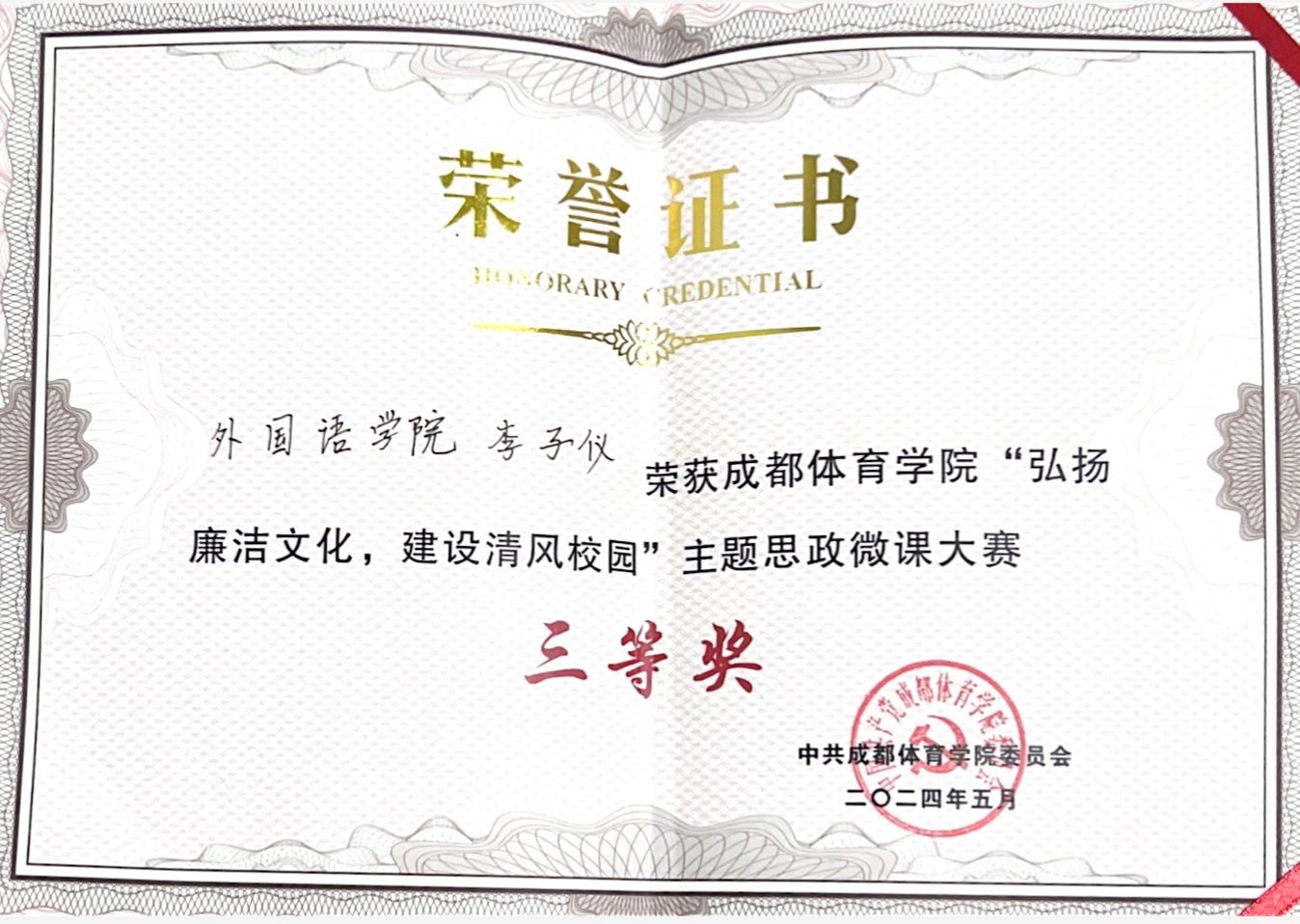 在比赛中,李子仪老师聚焦课程特色,紧扣清廉主题,把“弘扬廉洁文化,建设清风校园”融入到了课程教学内容,并通过巧妙的情景创设,将思政微课与清廉文化相结合,娓娓道来,感染力十足,得到了在场师生与评委们的充分肯定。