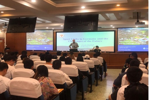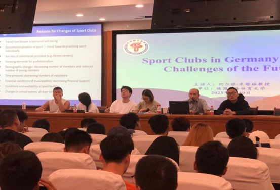 约尔根·米塔格教授深入浅出地对德国体育发展、德国体育俱乐部的发展、体育俱乐部面临的挑战和前景等详细进行了介绍,并以德国在夏冬奥会中竞技体育领域的优秀表现很好地引入了本次讲座的主题。他谈到,体育俱乐部成立目的由最初是培养士兵的爱国情怀发展到现在的促进国家的统一,再到如今的为不同人群提供多样化的体育服务,对社会产生了重要影响。同时,对“参与体育运动和俱乐部的影响因素”、“影响健康水平高低的因素”等方面进行数据分析,总结了德国体育俱乐部的影响。最后,约尔根·米塔格教授对体育俱乐部的发展前景提出了一些建设性的意见。
