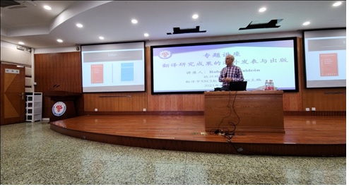 讲座上,Roberto A. Valdeón教授深入浅出地对各地区学术期刊排名类型、期刊影响因子和《Perspectives Studies in Translation Theory and Practice》期刊收稿情况等进行了详细介绍。Roberto A. Valdeón教授作为翻译学研究领域主要期刊的主编之一,他提供了该领域的主要出版物信息,对期刊收稿流程和时间进行了说明,并介绍了该期刊收稿标准与范围。同时,Roberto A. Valdeón教授通过列举研究者在向国际期刊发表文章过程中遇到的诸如主题、格式规范、提交程序、语言表达等方面问题提出了建设性的意见与建议。