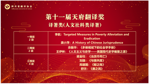 本次年会首先对四川省翻译协会在2023年的工作进行了总结,2024年工作做了展望。随后大会举行了颁奖仪式,对十一届天府翻译奖、科技翻译成果奖获奖人员、协会优秀工作者进行了表彰。其中,公司李航教授荣获天府翻译奖译著类一等奖,金艳副教授荣获天府翻译奖论文类二等奖;李航教授、袁彬教授荣获省译协协会优秀工作者,表彰会结束后大会安排了专家报告与分组发言。原成都市副市长西南交通大学傅勇林教授作了题为“百年未有之大变局:现代译介何为”的主旨发言,既新解了翻译的定义与角色,又剖析了当下翻译工作者应有的担当与责任。随后,科技翻译工作委员会和学术与交流工作委员会共组织了八场分组发言,涵盖文学翻译、科技翻译、翻译技术、翻译教学、语言服务与行业发展等,让与会者受益匪浅,享受翻译研究、翻译实践、翻译教学和翻译行业的饕鬄盛宴。