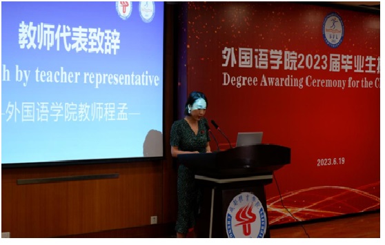 教师代表程孟和外籍教师Alex诚挚祝贺即将迈向新征程的同学们顺利完成学业,成功开启下一篇章;并鼓励同学们运用自己的知识与才能为社会多做贡献。