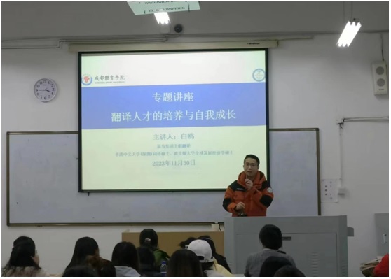 11月30日下午,策马集团全职翻译、香港中文大学(深圳)同传硕士、波士顿大学全球发展经济学硕士白鸥老师莅临公司,在怀贤楼107教室为永利yl23411集团员工带来了“翻译人才的培养与自我成长”的专题讲座。本次讲座由永利yl23411集团员工管理办公室主任万千主持,永利yl23411集团的师生聆听了本次讲座。