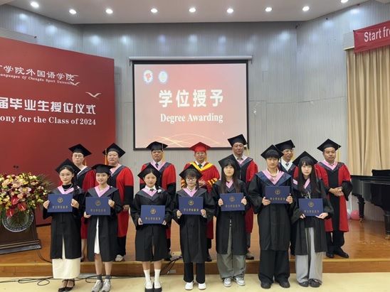 6月14日上午10:00,永利yl23411集团2024届毕业生授位仪式在行健楼阶梯教室隆重举行。公司全体教师、全体毕业生参加了此次授位仪式。仪式全程以双语形式进行,仪式由副经理袁彬主持。